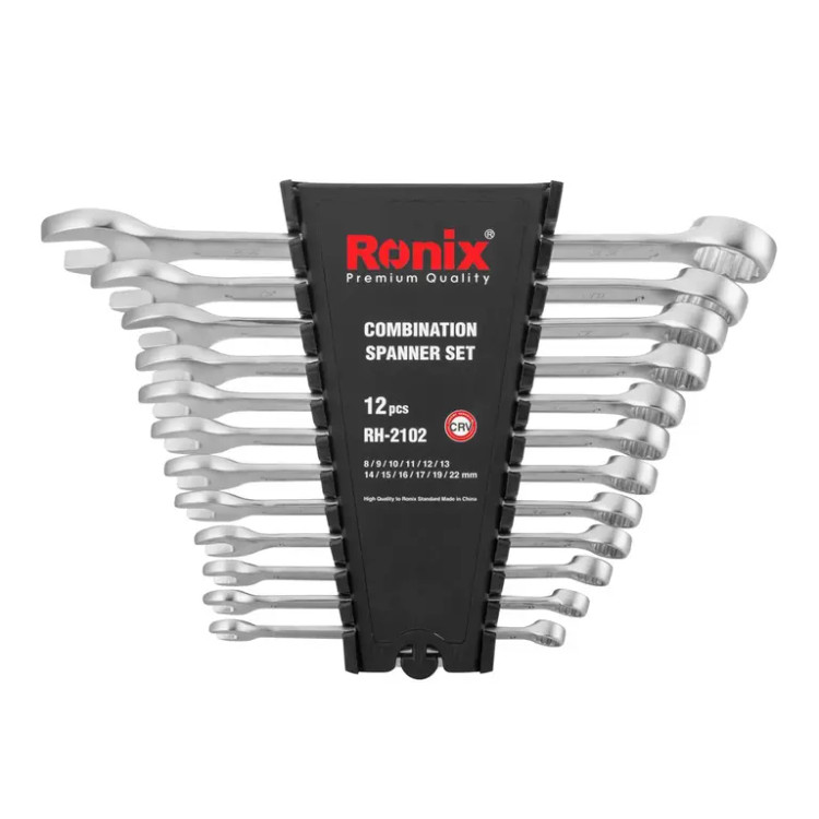 ست 12 عددی آچار یک سر تخت و یک سر رینگ رونیکس مدل RH-2102، شامل 12 عدد آچار از جنس آلیاژ کروم وانادیوم است. ابزاری کارآمد که نیاز هر جعبه ابزاری است.